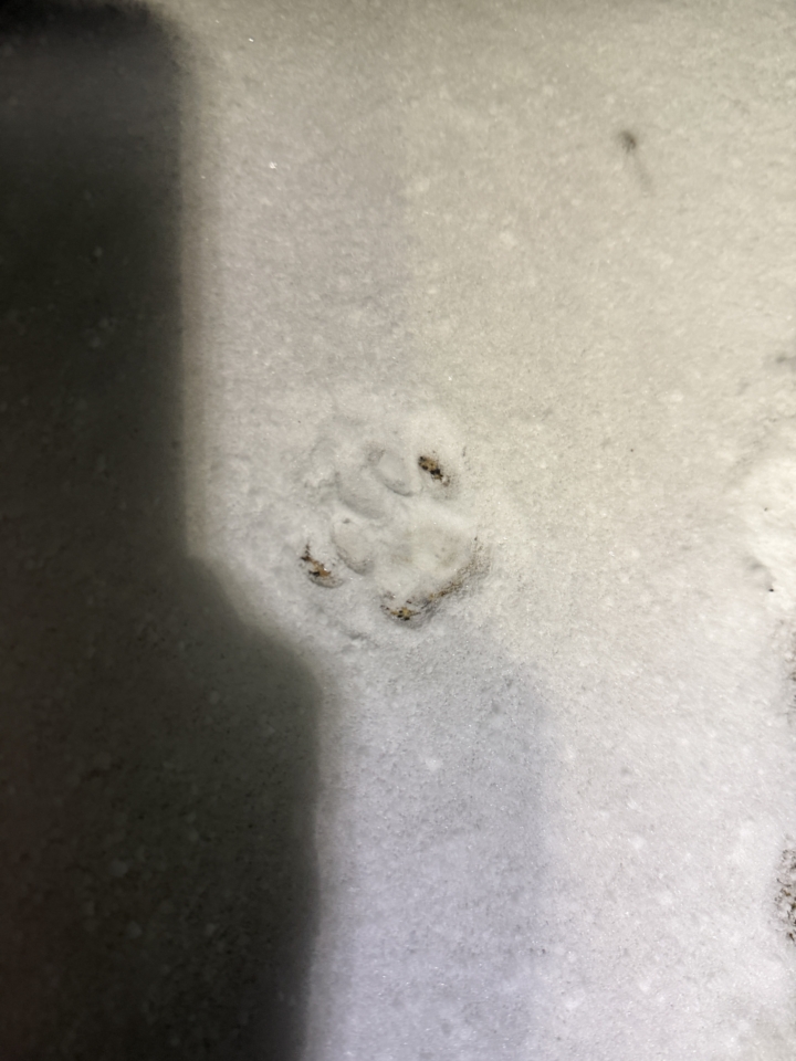 雪の降っていたある日、玄関を開けた時、小さくて可愛い足跡を見つけました。