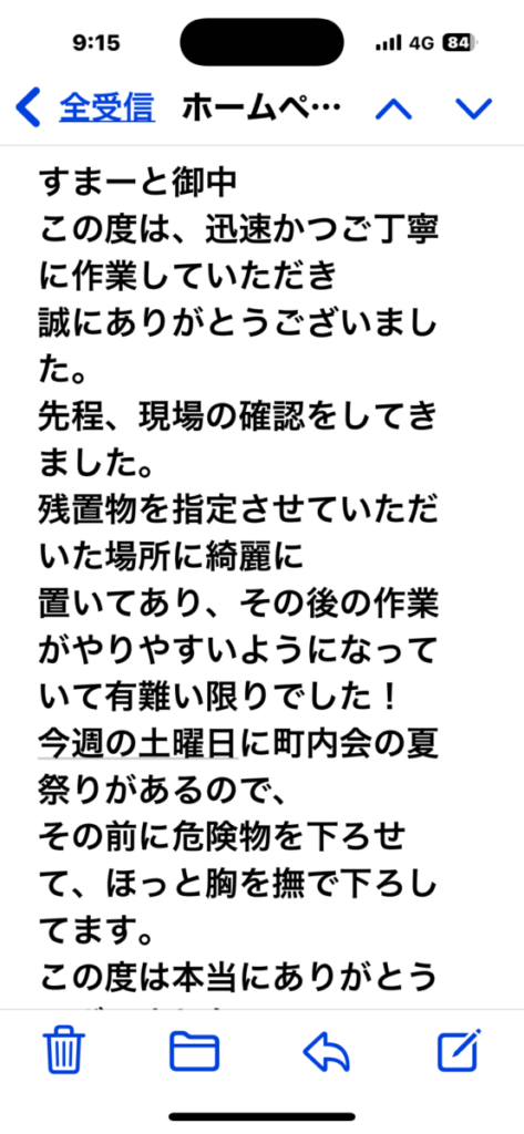 ここ数週間、朝から晩まで作業に追われておりまして作業が終わったお客様からは喜びの声をいただきまして、こちらこそ「お仕事をさせていただき、感謝の気持ちでいっぱい」です。