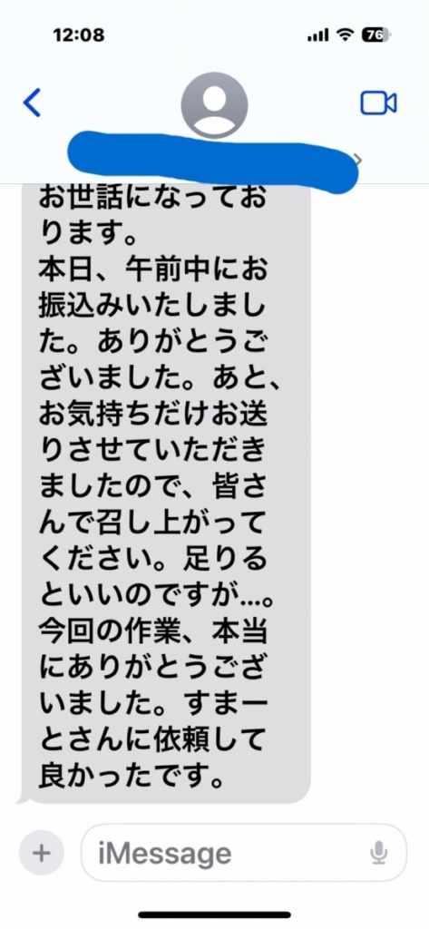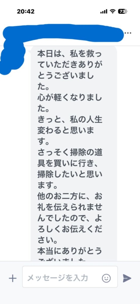 お客様からいただいた、感謝の文章を少しだけお見せしますね。
