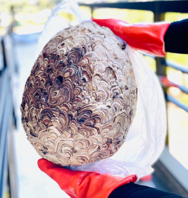 ハチの習性や駆除方法、安全対策や刺された際の対応方法など全ての面において専門的に熟知しているプロだからこそ出来る作業です。又、駆除している過程で近隣へ飛んで逃げたハチは必ず戻ってきます。